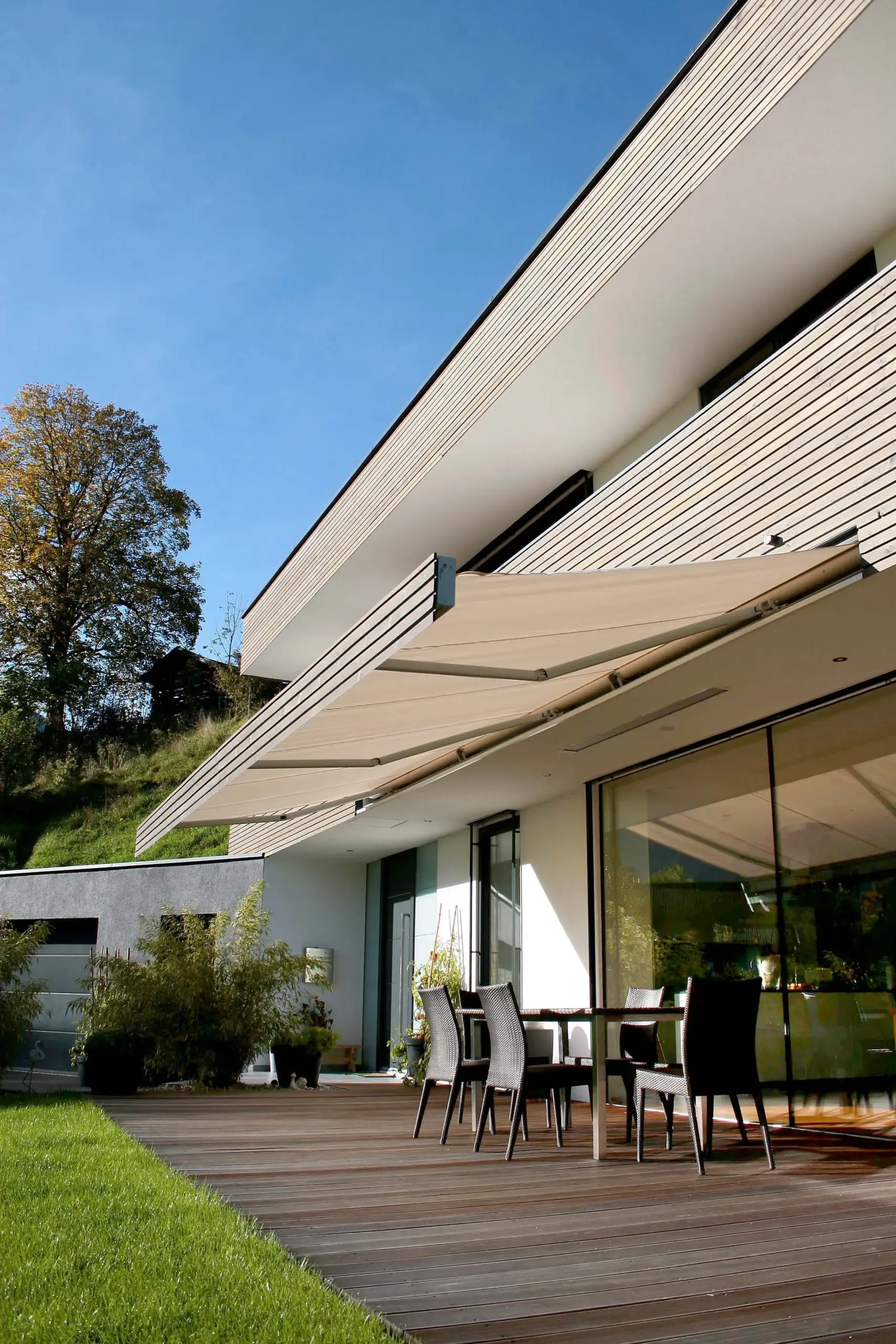Durch stabiles und hochwertiges Material ist Ihre Markise langlebig und resistent gegen Wettereinflüsse